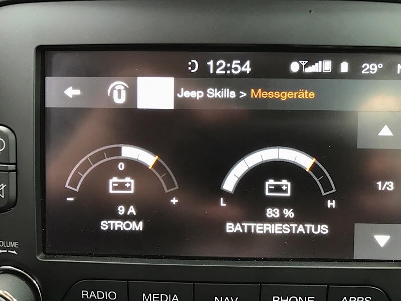 Danke für die Info mit der live app. Ich war die ganze Zeit schon etwas irritiert, dass der Ladezustand meiner Batterie nur mit vier Punkten angezeigt wurde. Das scheint aber bei einem 'gesunden' Renni normal zu sein. Jeep skills habe ich nicht, da bei mir das 5 navi eingebaut ist - oder gibt es die Batterieanzeige dort auch?