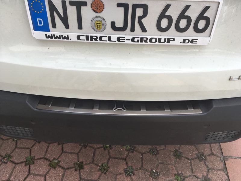 So, edelstahliger Ladekantenschutz in dunkel (am weißen Renegade auf schwarzem Stossfänger) montiert. Ist jetzt noch mit Kreppband fixiert. Aber nice. Foto kommt, wenn gewünscht
