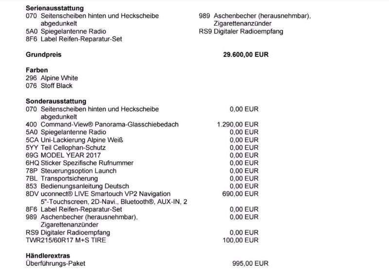 Der hat die "normale" Upland Ausstattung plus Ganzjahresreifen, Navi und dem Command View Dach...