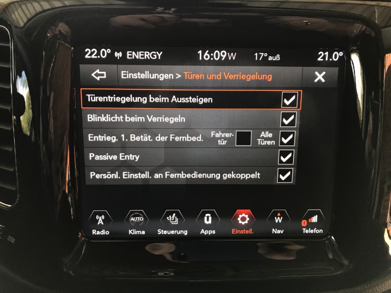 Leider ist in meinem Menü davon nix zu finden, obwohl ja die Einstellung Türentriegelung beim Aussteigen vorhanden ist -