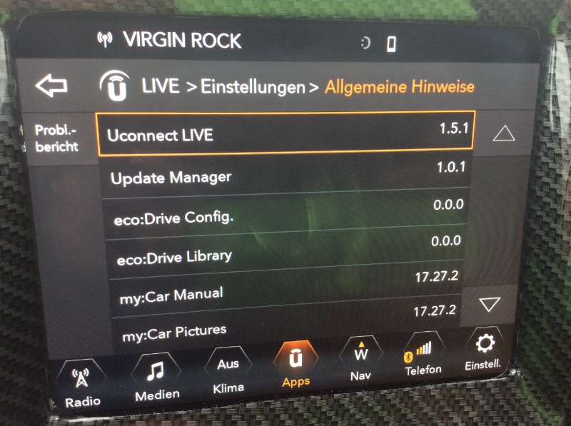 . Er meinte dann, das nächste Woche wieder der Uconnect Spezialist im Haus ist und er ihn auf das Problem ansprechen will. Bin mal gespannt ob er sich meldet.
