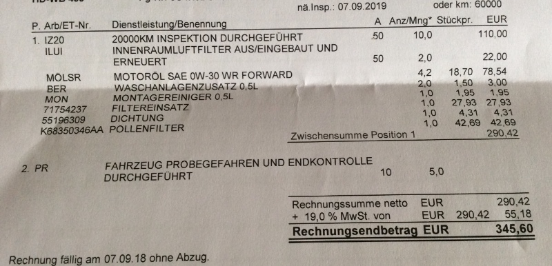 Haben diese Woche, nach genau einem Jahr und 16500 km, die erste Inspektion bei der Firma Gauch in Mannheim machen lassen.