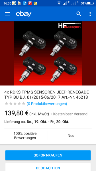 Da ich morgen auf meine Serienfelgen die Winterreifen montieren lasse - und mir für das Frühjahr dann 18 Zoll Alufelgen mit Sommerreifen zulegen werde, würde ich gerne wissen, ob diese Sensoren für Unseren Renegade in Ordnung wären?