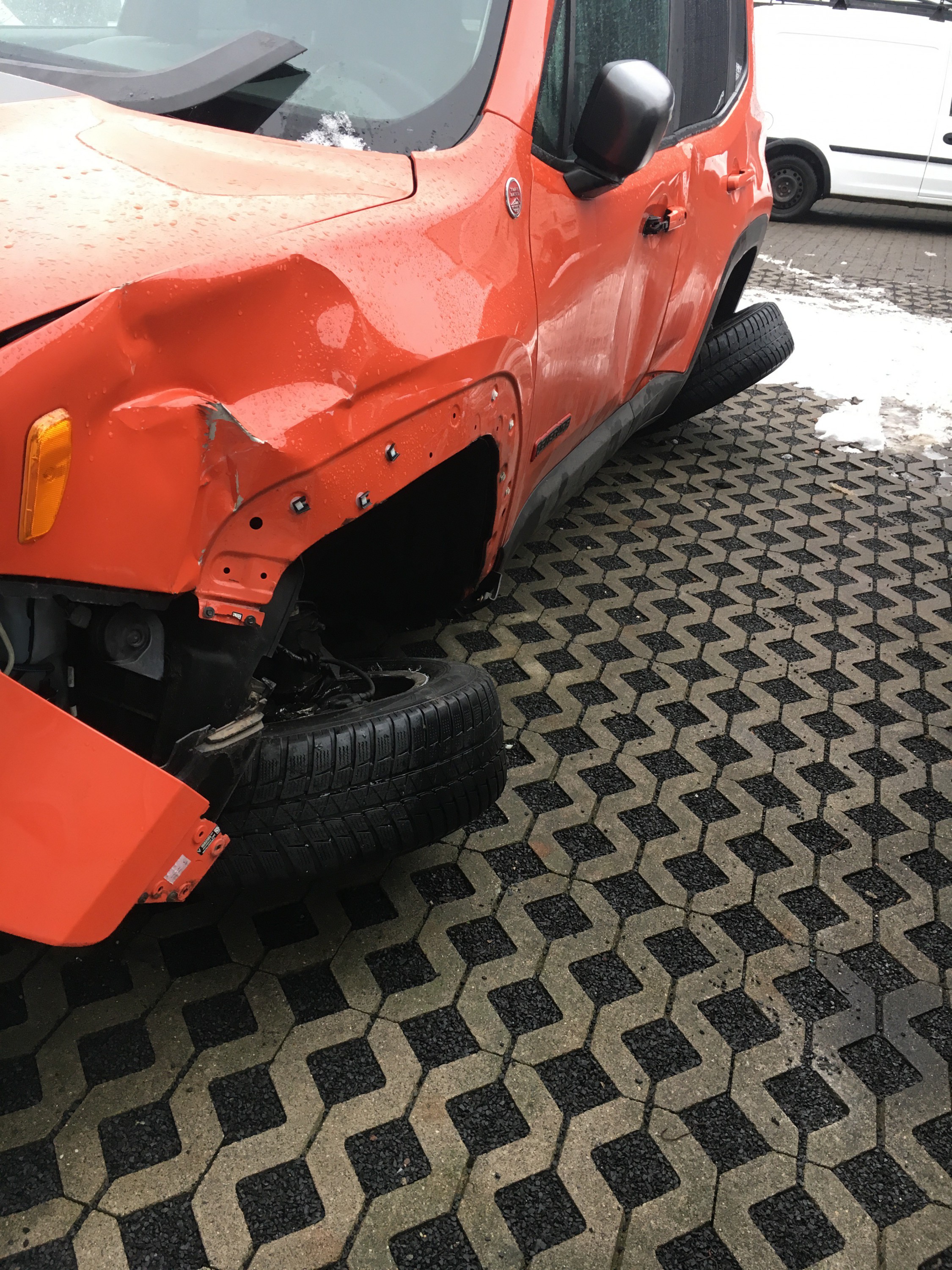 Wow, das war wohl ein hefziger seitlicher (und niedriger) Aufprall - oder ist der durch den Schneeschieber weggeschoben worden?