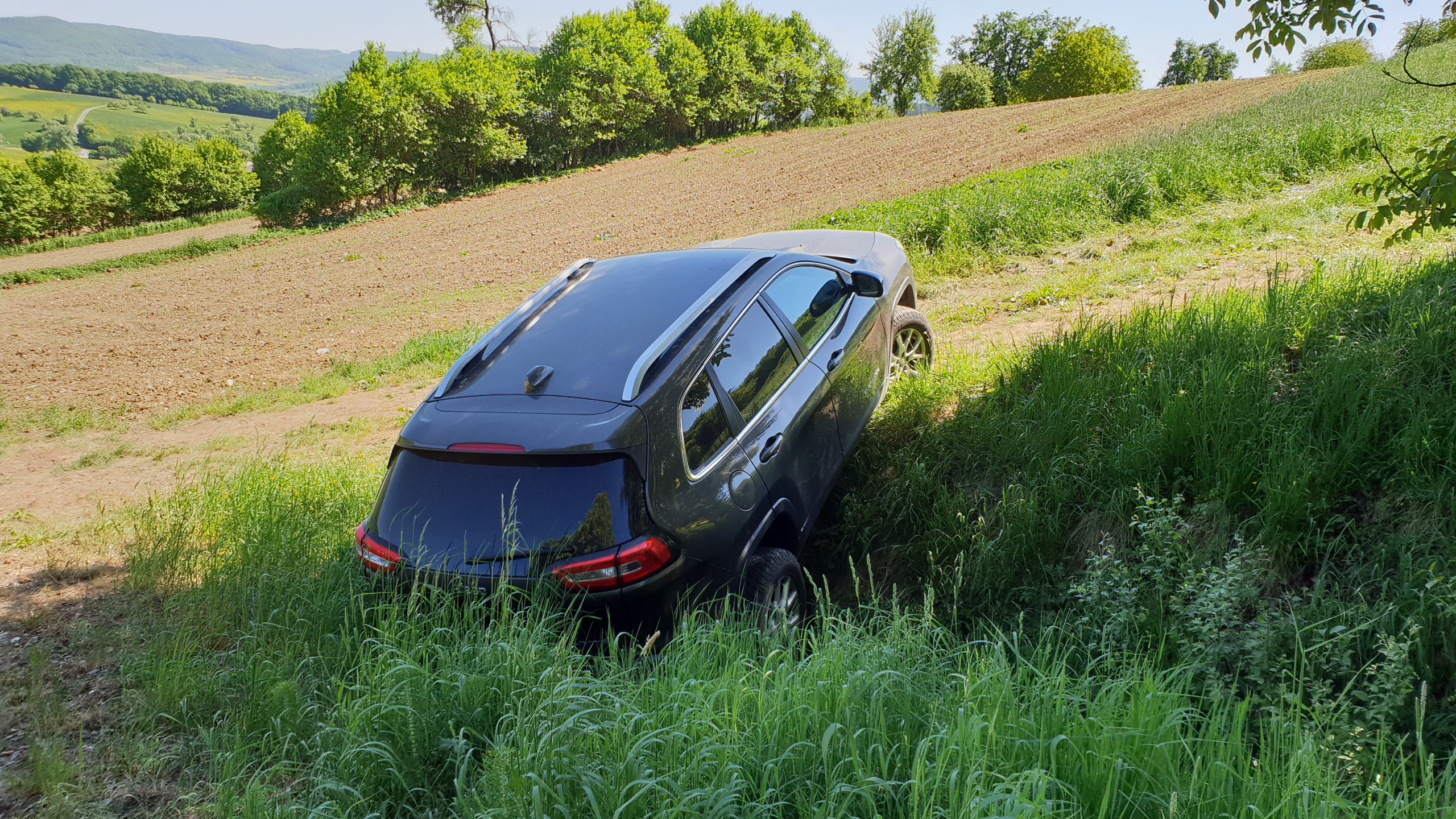 Er war nicht aufgesessen, zumindest nicht in der Mitte. Ganz hinten saß er mit der Stoßstange auf, wobei aber die hinteren Räder keinen Halt mehr hatten, waren in der Luft. Und die vorderen allein haben es nicht hinbekommen. Haben ihn mit einem Traktor rausgezogen.