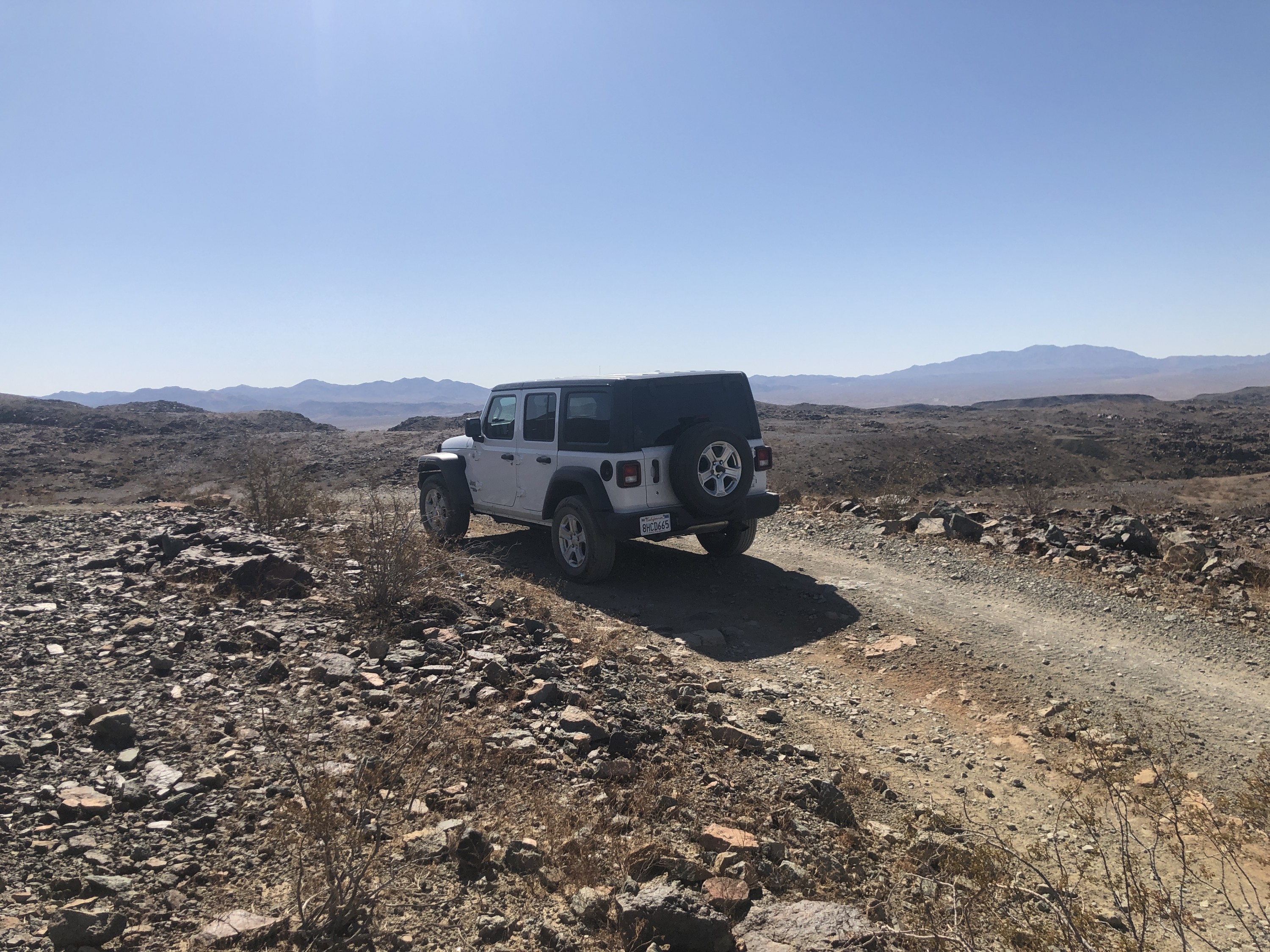 Ja, ein simpler JLU Sport von Hertz. Hat sich aber trotzdem wacker durch den Trail gekämpft, der Weg wurde noch deutlich übler. Selbst ein Stock-Wrangler ist halt schon äußerst geländegängig.