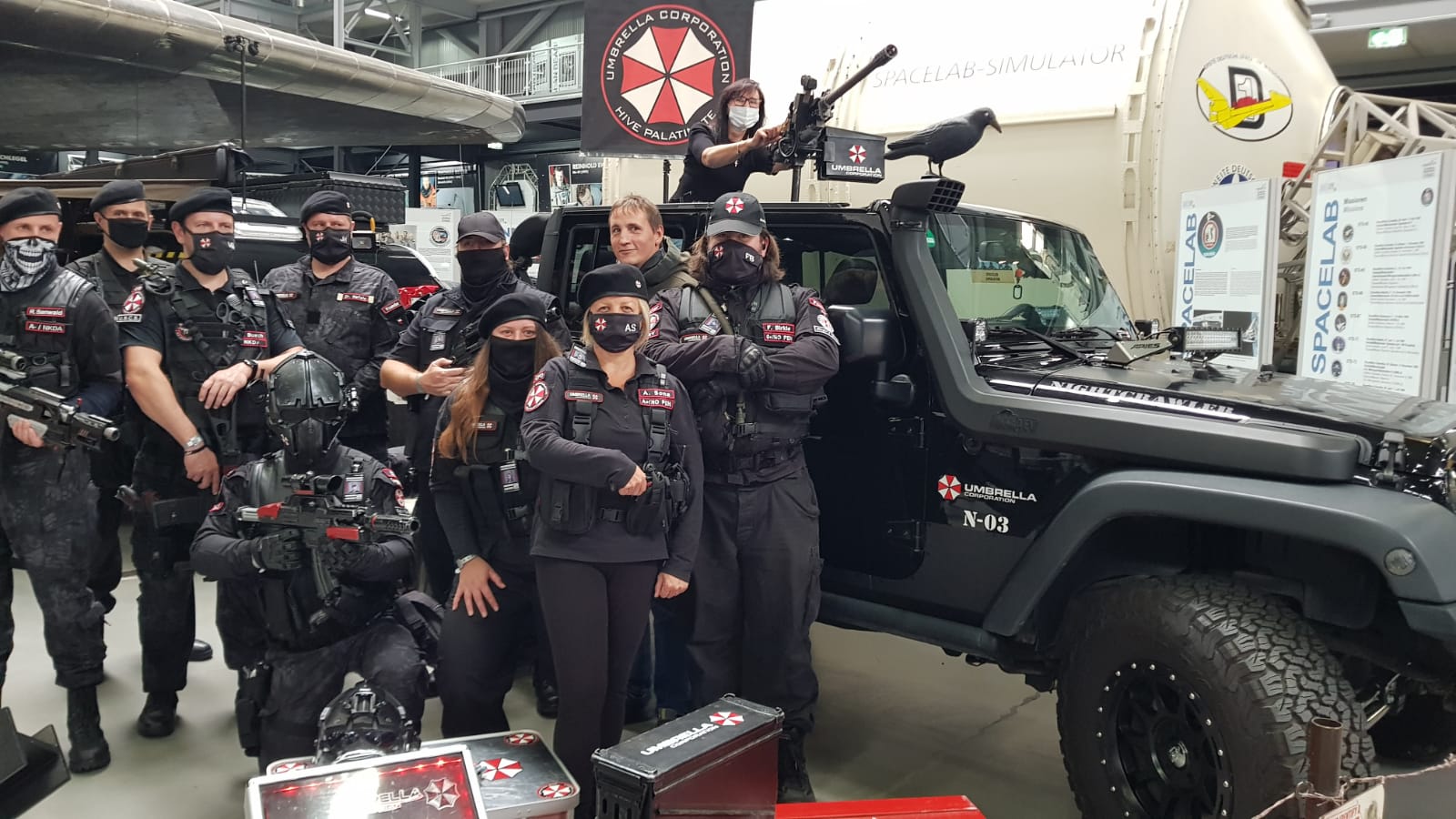 Ja, Der Jeep gehört zu meinem Stammtisch. Und ja. die haben das offizielle Wochenende abgesagt, es haben sich nur ein Paar Cosplay Freunde getroffen. Der "Umbrella Hive Palatinate" hat eine besonders enge Beziehung zum Technik Museum, deswegen hatten die dort den Stand.