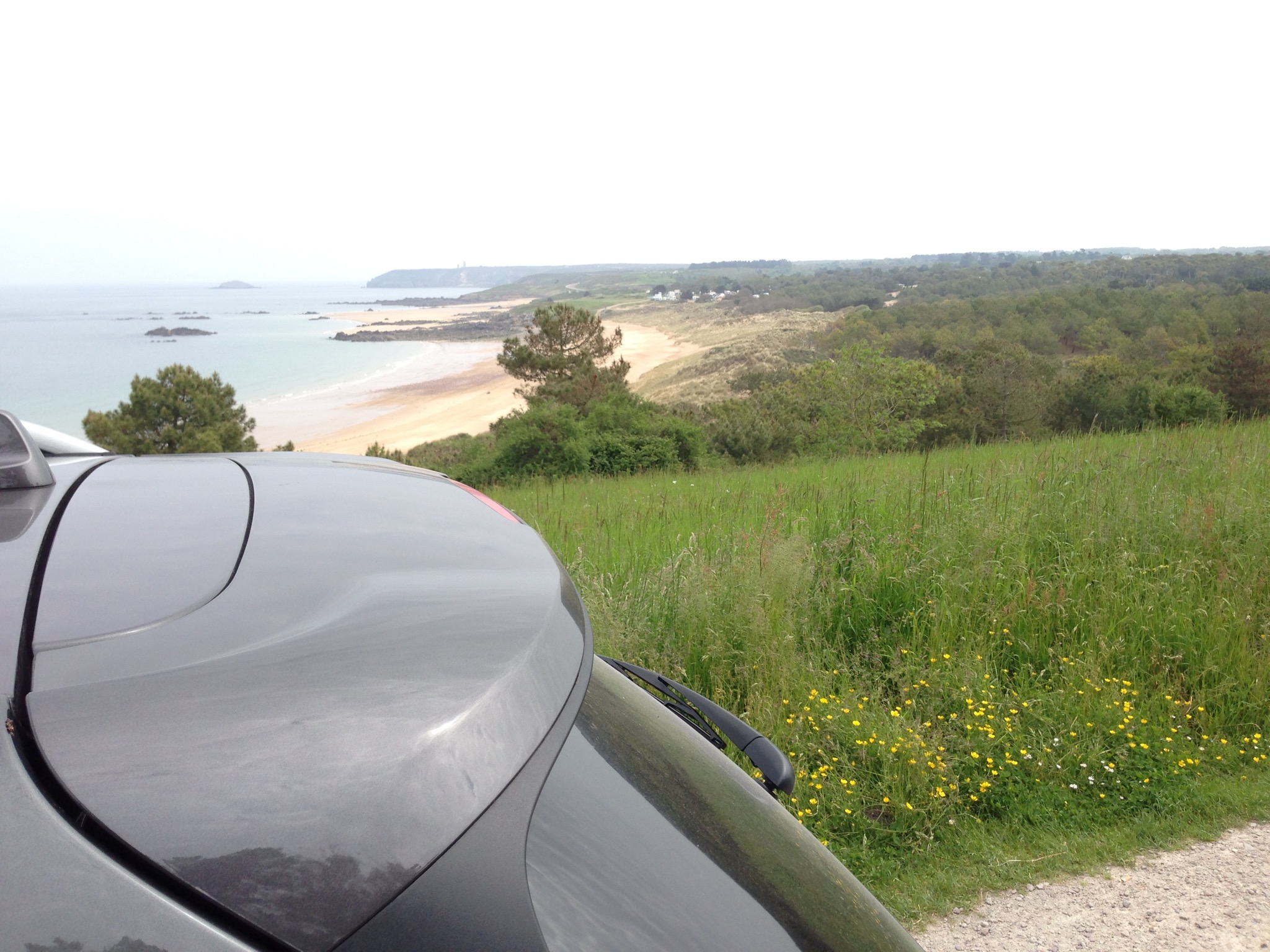 Eine kleine Auswahl. Jetzt über den Heckflügel hinweg auf einen der schönsten Strände in der Umgebung. Bei ziemlicher Ebbe. Der Tidenhub hier ist schon gewaltig. Es gibt Strände hier, da sieht man bei voller Ebbe nicht mal mehr das Wasser, so weit geht es zurück. Ungelogen!