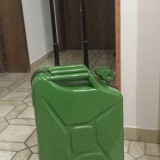 • Nun wir habe ja den Metallkanister, gewogen hat den noch keiner beim einchecken, aber ich packe auch nicht gerade die schweren Sachen ein. Aufsehen erregt man schon damit, bisher nur positiv, sogar die Polizei am Flughafen in Nürnberg fragte wo man den sowas kaufen kann. Bei der Personenkontrolle mussten wir ihn jedesmal öffnen. Also es ist es ist halt ein Gag. Wir haben noch das Jeep Owner's Emblem draufgeklebt, macht sich auch ganz gut.