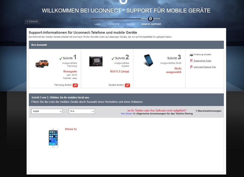 Jo nur ist das höherwertige Standardgerät von UConnect für den Renegade eigentlich das 6.5 er mit Navi und nicht das popelige 5" Nichtskanndingens ... auch wenn du nur das kleine 5" drinhast Mäuschen ... das 6.5 UConnect gibt es als satten Aufpreis (und das ist noch nichtmal die Premiumkiste mit Beats vom Piraten) beim Renegade ... und diese Gerät wird seit 2014 für den Renegade verkauft ... 2016 noch nicht auf der Webpage mit aktuellen Handys vertreten ... ist schon ein Superladen UConnect ...