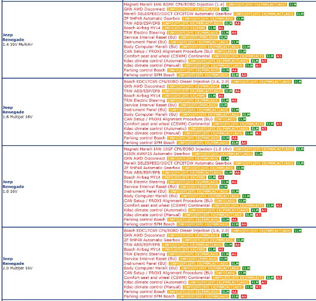 Habe jetzt mal die ersten Trockenübungen mit AlfaOBD gemacht, allerdings nicht auf einem Androiden, sondern mit der Windows Version. Die Software lässt sich auf Deutsch einstellen, zu jedem Steuergerät wird in der Auswahl gleich angezeigt, ob und wenn ja welcher Adapter benötigt wird. Es deckt sich alles mit den Angaben, die auch Multiecuscan herausgibt, beim Renegade und Compass (sind absolut identisch) gibt es die drei Konstellationen ohne Adapter, Adapter 5 und Adapter 6. Cherokee muss ich mir erst noch ansehen.