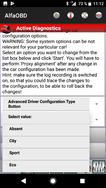 Nachdem ich im AlfaOBD Menü für Menü durchgegangen bin, muss ich sagen dass mir ganz einfach die Erläuterung fehlt, was hinter den Optionen in der Auto konfiguration steht. Was soll mir die ein/ausschaltbare Option "global window down" sagen? Ist das die lang vermisste Option dass bei lang gedrücktem Türöffner auf der FB alle Fenster runterfahren? Was soll logistic mode sein? Was steckt hinter ECO Mode? Was ist PAM tuning Set? Was ist der Unterschied zwischen TPMS (Reifendruck) Basic und Premium? Die Liste lässt sich beliebig fortsetzen.