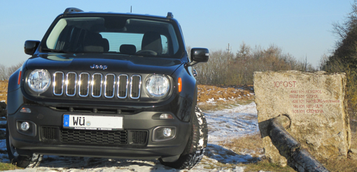 versucht noch in der nächsten Woche einen Termin zu bekommen damit die Scheiben foliiert werden können. Am Samstagmorgen bin ich gleich los um bei strahlendem Sonnenschein ein Foto für Euch zu machen. Wo fotografiert man einen Jeep Renegade LONGITUDE? Richtig, man stellt ihn auf den 10. Längengrad, vor allem wenn der gleich in der Nähe von uns vorbei geht
