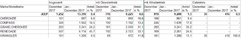 Auf jeep.der wird die Opening Edition noch immer angeboten wie sauer Bier. Losgeworden sind sie die Autos irgendwie nicht. Dann gab es auch noch MY17 aus der regulären Modellpallette, allerdings mit sehr eingeschränkter Auswahl an Motoren und Ausstattung. Das Meiste war gar nicht bestellbar. Auch da wird die Nachfrage überschaubar sein. Ich vermute mal, dass da zum Jahresende einige Compass zu Dumping-Preisen über TZ auf den Markt geworfen werden. Irgendwie war die Markteinführung nicht besondes clever gemacht, und den Trailhawk gibt es bis heute nicht. Dann braucht man sich nicht wundern, wenn der Erfolg nicht kommt.