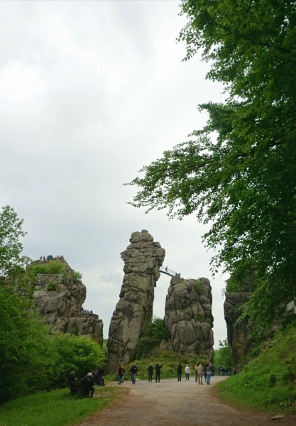 Kurz bevor wir dann zum ersten Tagespunkt fuhren kam dann noch eine große Überraschung für alle um die Ecke - eine Dame aus Hamburg mit Ihrem Wrangler - sie hatte von der Aktion im Internet gelesen und war spontan die ganze Strecke aus Hamburg zum Treffen gefahren. HUT AB!!Dann ging es bunt gemischt mit 18 Fahrzeugen zu dem ersten Highlight, den Externsteinen. Hier ein kleiner Teaser von der Parkplatzpräsens: