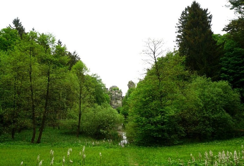 Kurz bevor wir dann zum ersten Tagespunkt fuhren kam dann noch eine große Überraschung für alle um die Ecke - eine Dame aus Hamburg mit Ihrem Wrangler - sie hatte von der Aktion im Internet gelesen und war spontan die ganze Strecke aus Hamburg zum Treffen gefahren. HUT AB!!Dann ging es bunt gemischt mit 18 Fahrzeugen zu dem ersten Highlight, den Externsteinen. Hier ein kleiner Teaser von der Parkplatzpräsens: