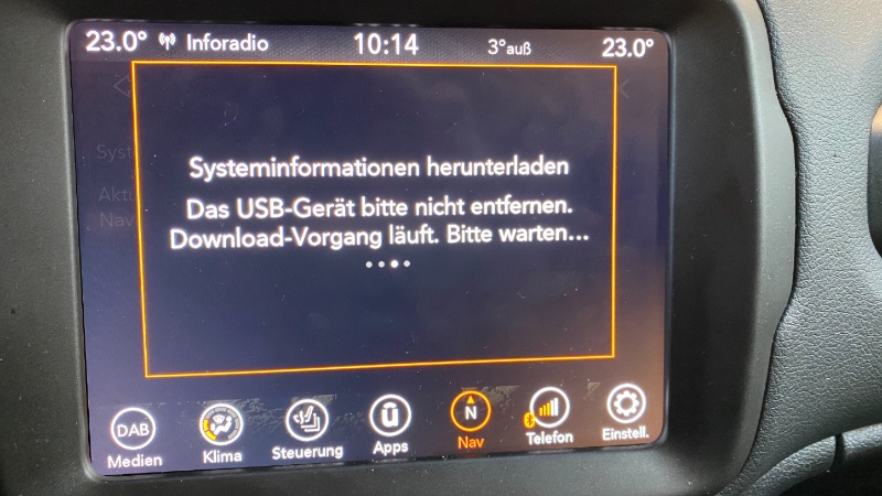 Ich hab bei der ganzen Geschichte nach wie vor ein ziemlich mulmiges Gefühl. Das Uconnect ist eine ziemlich komplexe Sache wo jede menge Zeug dranhängt und nicht vergleichbar mit einem DIN-Radio oder TomTom Navi, dass man mal geschwind an den Laptop anschließt.