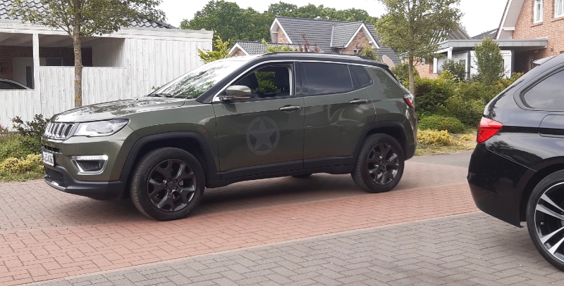 Seit Freitag gibt‘s keinen Chrom mehr am Compass. Fensterrahmen, Dachrehling, Umrandung der Nebler in schwarz glänzend. Leiste an der Front in schwarz matt...