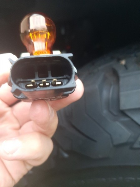 Die 2 Fadenbirne ist noch verbaut, allerdings gehen nur 2 Kabel an den (die) Stecker/Fassung. Das 3. Kabel kann ich nicht finden.......