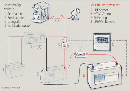 • In Rubi hab ich ja eine zweite Batterie (die sogenannte AUX-Batterie) eben für den SS-Rotz,